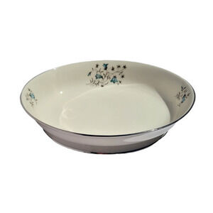 Vintage Flintridge Belnor Serving Bowl, Made in California, Blue Flowers Silver Band 60s