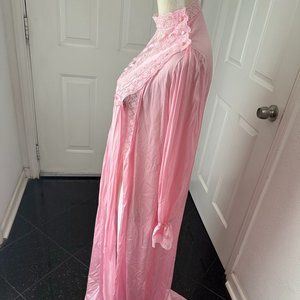 Vintage 60s GILEAD Unusual Romantic Pink Robe Negligee With Lace Size S
