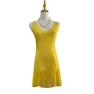 Vintage 60s Germany Stretta Neon Yellow Sheer Lace Mini Full Slip Dress Size S