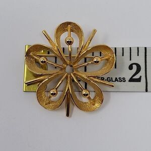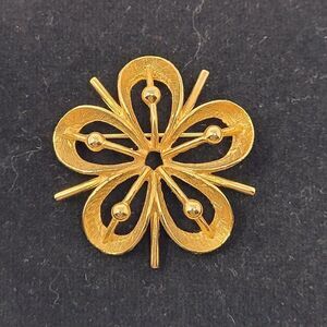 Vintage 60's Gold Tone Atomic Flower Brooch Pin Pendant 3D Etched Gift