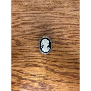 Vintage 60s Gothic Cameo Brooch navy blue silver pin charm pendant