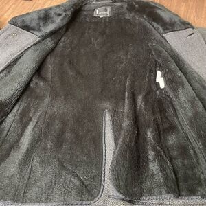 Vintage 60's Gray Herringbone Wool Tweet Coat Faux Fur Lining Collar Men’s 42