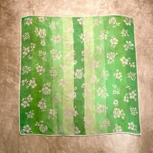Vintage 60s Green Mesh Floral Bandana Scarf