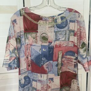 It’s an amazing dress. A line cut with loose sleeves. Cream lace trim around the neck with rhinestones sewn in.