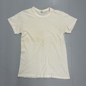 Vintage 60s Hanes White Distressed Blank Cotton T-Shirt