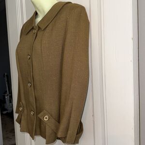 Vintage 60s Herman Marcus tan light nubby tweed jacket with gold buttons with 3/4 sleeves