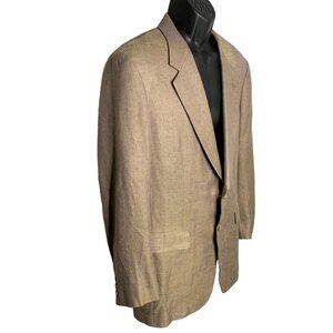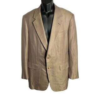 Vintage 60s Hickey Freeman Silk Sport Coat 43 Brown Blue Lined Blazer Pockets