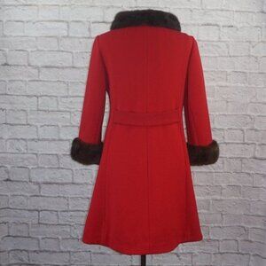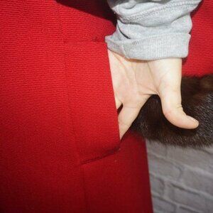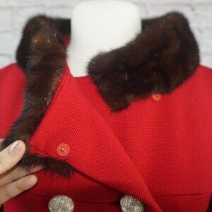 Vintage 1960s 60s Holly Gab ILGWU International Ladies’ Garment Workers’ Union Red Wool Mink Collar Cuff Double Breasted 100% Pure Wool Coat