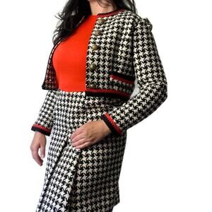 Vintage 60s Houndstooth Orange & Black Dress & Matching Jacket Size 6