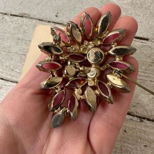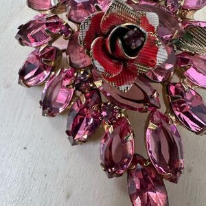 Vintage 60s Incredible Pink Rhinestone Victorian Rose Set Brooch And Earrings