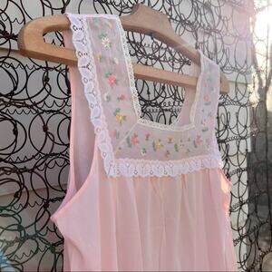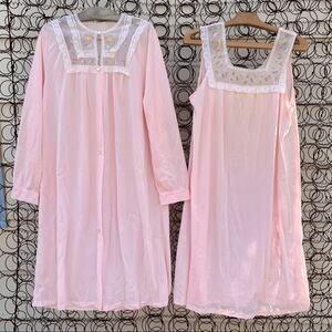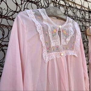 Vintage 60s JCPenney Pink Floral Embroidered Peignoir Negligée Set Medium