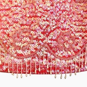 Vintage Fashion Sequin Top Beaded Embellishment Sleeveless Knit Glam Authentic Vintage Sparkle Party Cocktail Pink