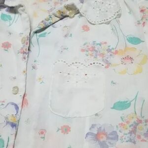 White Eyelet Bust Pocket with a Ditsy Floral Pattern in Pastel Pink, Purple, Blue, Yellow and Green