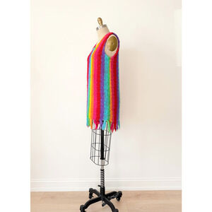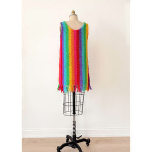 Vintage 60s Jack Winter Rainbow Crochet Mini Fringe Hem Dress RARE!