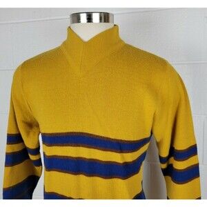 Vintage 60s Jantzen NLF Expandables V-Neck Sweater Gold Blue Brown Rams? M