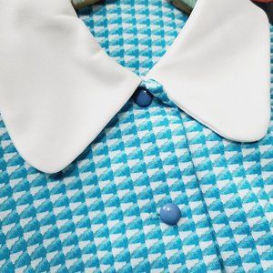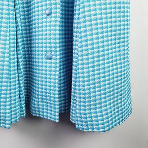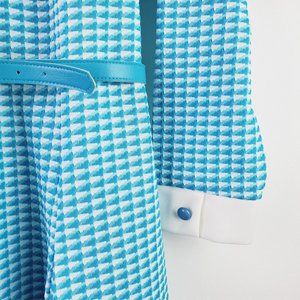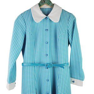 Vintage 60s Jean-Ann's ILGWU Cyan Blue Career Houndstooth Print Shirt Dress, 14