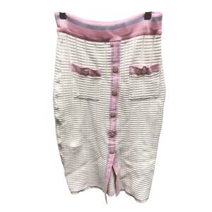 Vintage 60s Knit Cream Pink Skirt Suit Size S (No Tags - See Measurements)