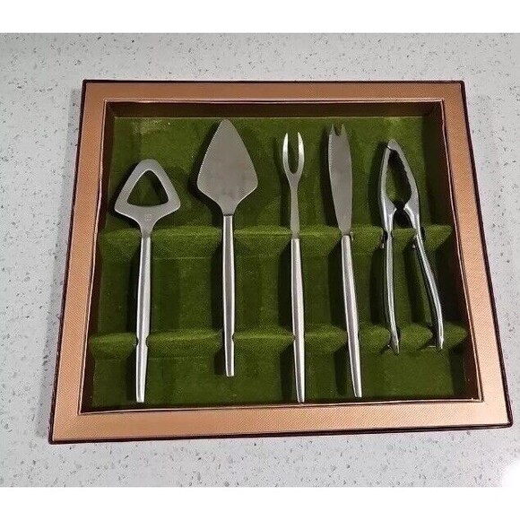 Vintage 60s Kolmar Designs 5 Piece Bar Set Mid Century Italy Stainless SS in Box