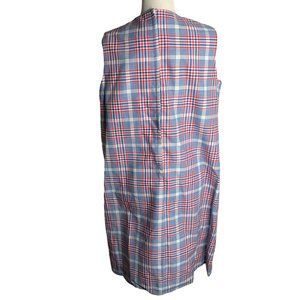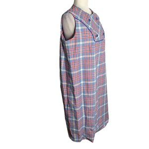 Vintage 60s Lady in Waiting Maternity Dress M/L Red Blue Plaid Sleeveless Zipper