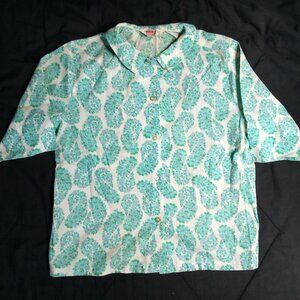 Vintage 60s Laura Mae Lifepress Floral Button Shirt Short Sleeve - Size 34, Measures p2p=19" Length=21" Sleeve Length=11" - Excellent Condition, No Flaws