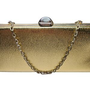 Vintage 60s Leather Gold Clutch Purse Handbag Metallic Chain Handle Envelope MCM