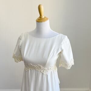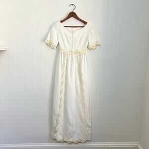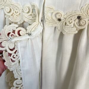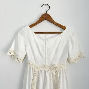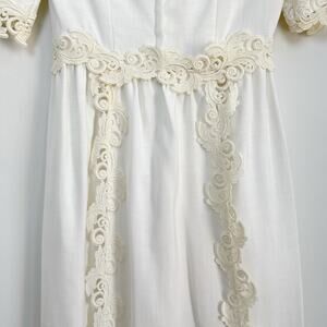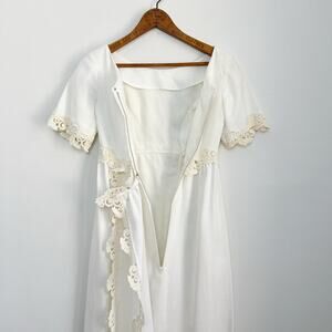 Vintage 60s Linen Wedding Dress Murray Hamburger ILGWU Lace Trim Gown Train 2