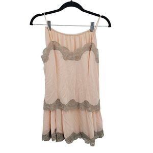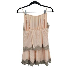 Vintage 60s Lingerie Slip Set M Peach Gray Lace Sweetheart Camisole Circle USA