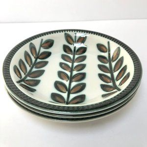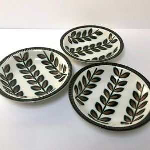 Vintage 1960s era mid-century modern Belgian Boch pottery Rambouillet leaf patterned ceramic handpainted shallow cereal/soup/salad bowls.