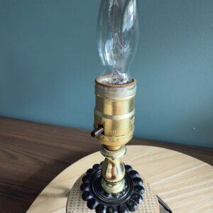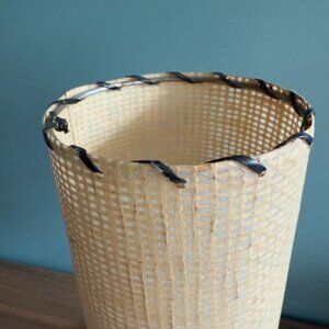 Vintage 60s MCM Tripod Accent Lamp w/ Woven Fiberglass Shade Metal Base Tabletop