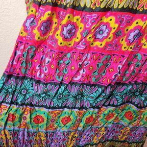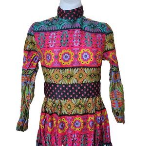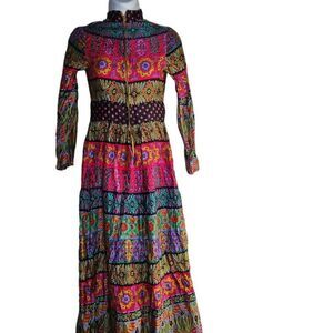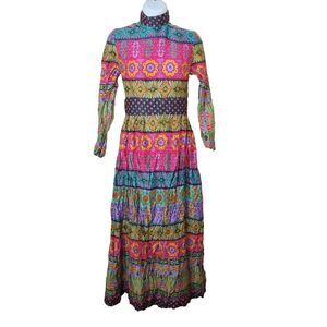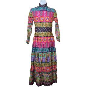 Vintage 60s Maxi Dress Womens Size S Neon Floral Paisley Groovy Hippie Boho