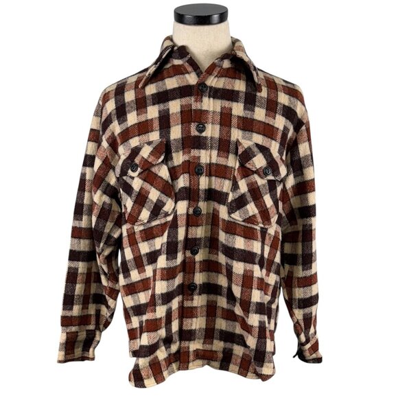 Vintage 60s McGregor Heavy Wool Plaid Shirt Jacket Made In USA Size L