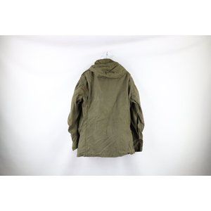 Vintage 60s Mens Small Thrashed Vietnam War Hooded M-65 Field Jacket OG-107 USA Mens Jacket Front zipper and hood zipper broken. Zipper and buttons corroded. Holes front top right, right arm. Stain left cuff, back middle. Still buttons up. Thrashed. AS IS. USA made Mens size Small Measurements are: 20.5 inches underarm to underarm 29 inches top to bottom Green Cotton Blend Check out my other items in my store! A379 SH