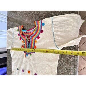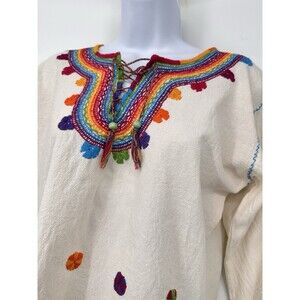 Vintage 60s Mexican Blouse Top Peasant Embroidered Floral Folkwear Art Frida