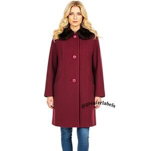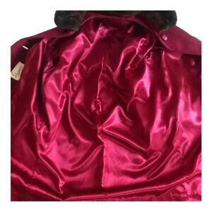Vintage 60s Mink Collared Boucle Wool Coat Cherry Red Burgundy Size M Beautiful