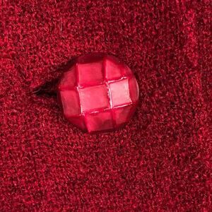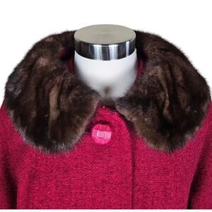Vintage 1960s Shagmoor wool coat with genuine mink fur collar. Dark red (cherry ?) boucle wool. Brown mink collar. Pockets. Original matching red acrylic buttons. Satin lining. 3-button closure. Hidden button at the collar, and 3 hidden buttons on the inside. ILGWU label.