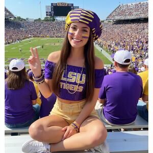 And here’s the twist — the purple and gold silk palette gives this piece crossover appeal for LSU Tigers fans, Mardi Gras style lovers, or even Minnesota Vikings fans looking for something truly one-of-a-kind. Whether you wear it for fashion or fandom, it’s a statement piece that tells a story.