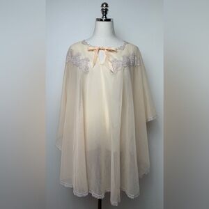 Vintage 60’s Mistee Peach Nylon Sheer Bed Cape Jacket Lingerie Medium