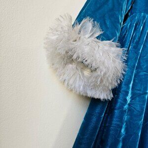 Vintage 60s Mod Blue Velvet Empire Waist Winter Ice Jacket Coat Faux Fur XS