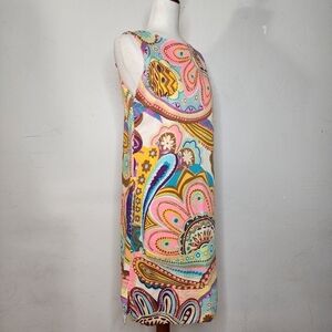 Vintage 60's Mod Florida Handprints Hand Screened Print Pink Shift Dress