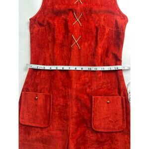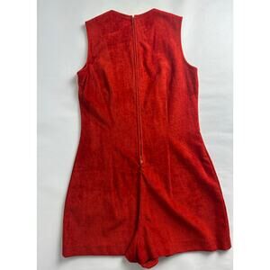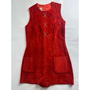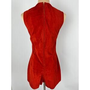 Vintage 60s Mod Go Go Red Orange Suede Romper Playsuit Size Small Medium