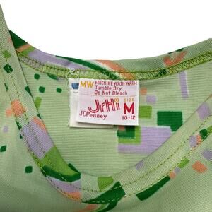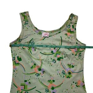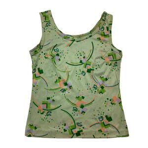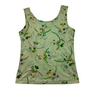 Vintage 60s Mod Green Geometric Print Triacetate Tank Top Size Medium JC Penney