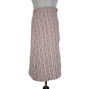 Vintage 60s Mod Knee Skirt Size XL Pink Brown Geometric Poly Jacquard