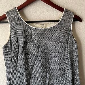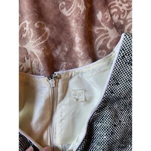 Step into true 1960s sophistication with this vintage mod tweed two-piece set. The sleeveless sheath dress is paired with a coordinating short-sleeve jacket, creating a chic and polished silhouette. The gray tweed fabric captures that mid-century modern elegance, perfect for fans of Jackie O, Mad Men style, or the timeless mod look. A rare and versatile piece that transitions seamlessly from daytime events to evening gatherings. Only flaw is a spot on the closure front that needs to be washed out.