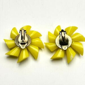 Vintage 60s Mod Yellow Flower Clip-On Earrings 2" Retro Pop Art Boho