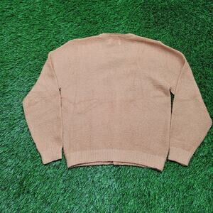 Vintage 60s Mohair Wool Cardigan Sweater Mens S Ivy League Preppy  Fits Womens Medium Made In USA Grunge Kurt Cobain Style Academia Mid-Century Modern MCM Rockabilly Beatnik Fuzzy Hairy Shaggy Textured V-Neck Button Front Soft Cozy Tan Camel Fawn Light Brown Tag Barclay