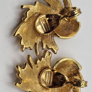 Vintage 60's Monet Gold Tone Feather Wave Pierced Earrings 1in | Materials: gold metal alloy | Length: 1in | Clasp: clip on | Signed? monet | Excellent vintage condition