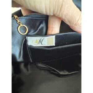 A chic vintage 1960s Morris Moskowitz evening purse, perfect for formal occasions. This satin envelope hand muff design adds elegance and warmth to any outfit, making it a unique addition to your collection. This is a large purse. It measures 15" wide and 10" tall. It is a hand warmer muff as well as a purse. It includes a mirror and a coin purse. The mirror is aged and foggy. The purse hardly looks used if at all. It is in very good condition.