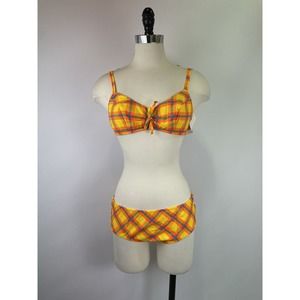 Vintage 60s NWT yellow plaid bikini set with side cutout. Major original Barbie vibes. Live your best 60s barbie fantasy
