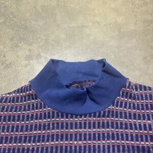 Vintage 60s Navy/Red Knit Mock Neck Pattern Shirt