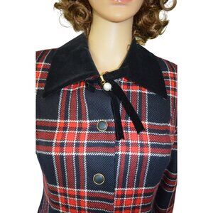Vintage 60s Nonnoca Plaid Double Breasted Coat Dress Size XS Coquette Holiday